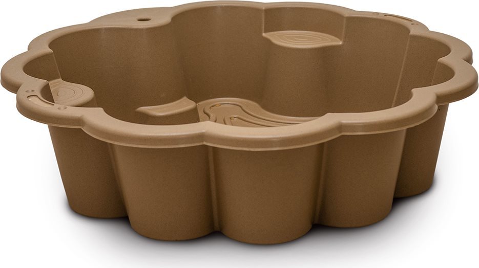 Pískoviště ve tvaru květiny se 2 vnitřními sedátky . Vyrobeno z EKO surovin na bázi pšeničné slámy = snižování uhlíkové stopy a ekologičtější budoucnost. Vhodné na zahradu, terasu či balkón. Do otvoru v okraji pískoviště lze umístit slunečník.