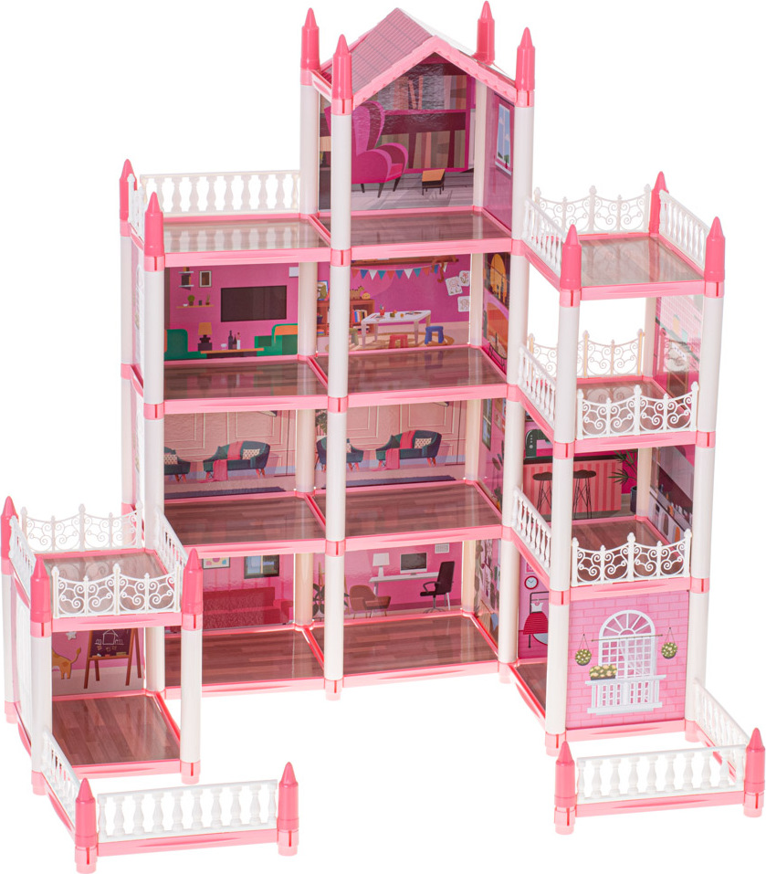 V domě jsou až 4 patra, která si můžete vyzdobit podle vlastního návrhu. Díky tomu, že je dům postaven svépomocí, můžete se s dítětem rozhodnout, kde budou jednotlivé místnosti, a že jich je mnoho: obývací pokoj, pracovna, kuchyň, koupelna, šatna, dětský pokoj. Konečné využití místností je však na vás! Všechny stěny a střecha domku jsou v oblíbené barvě dětí - růžové! Kromě toho jsou vnitřní stěny opatřeny grafikou s mnoha kusy nábytku a dekoracemi, které jsou nezbytné v každé domácnosti, což dodává domku realističtější vzhled. Velké množství nábytku usnadní uspořádání interiéru a učiní domeček vhodnějším pro panenky.