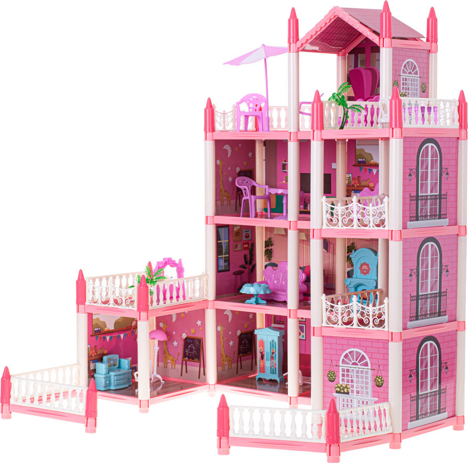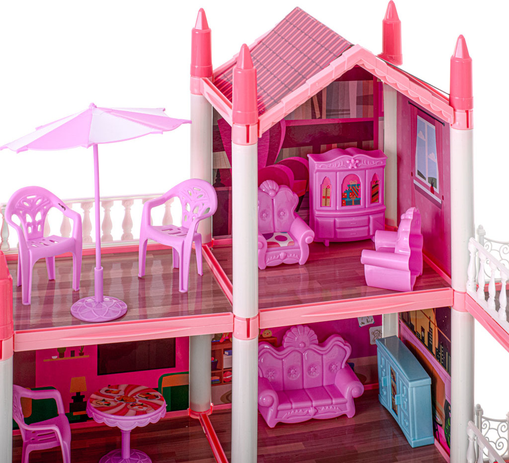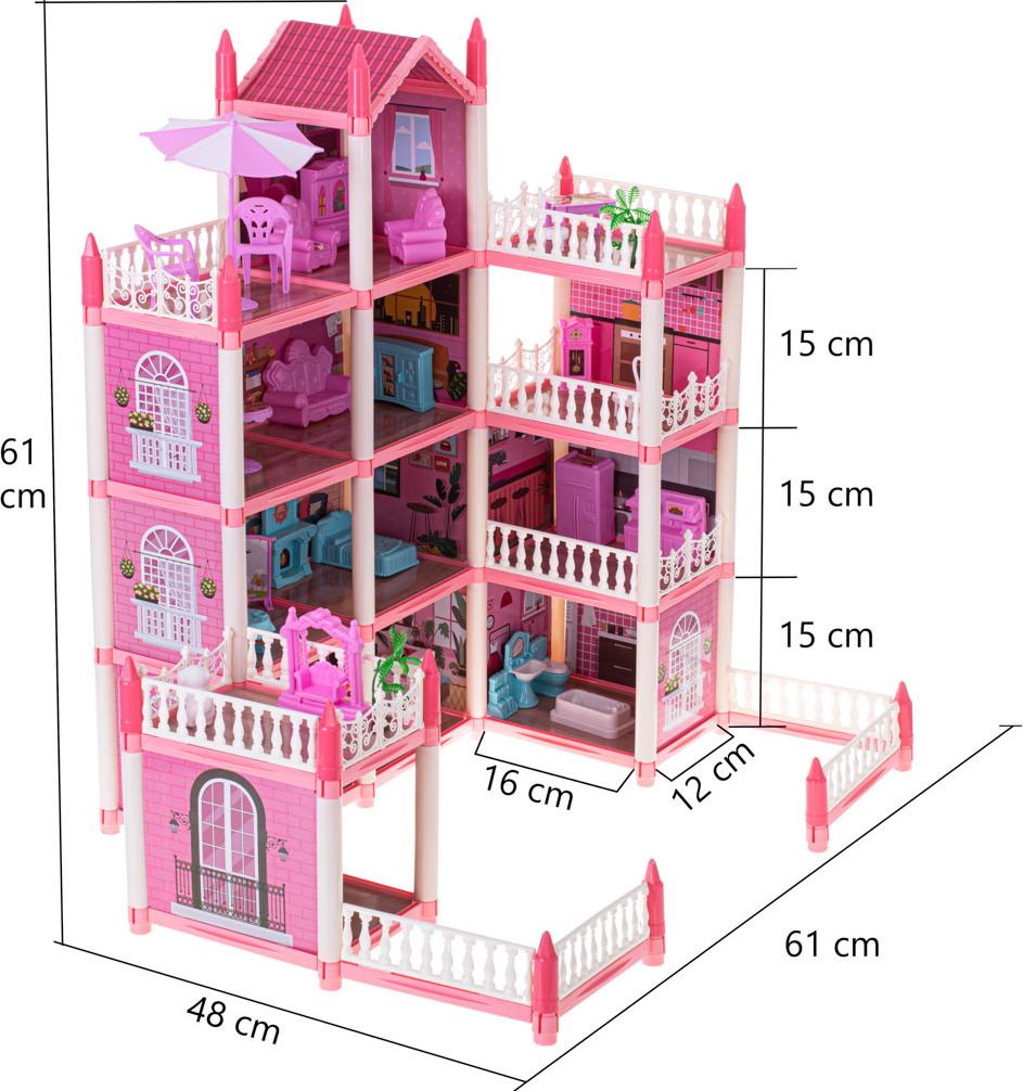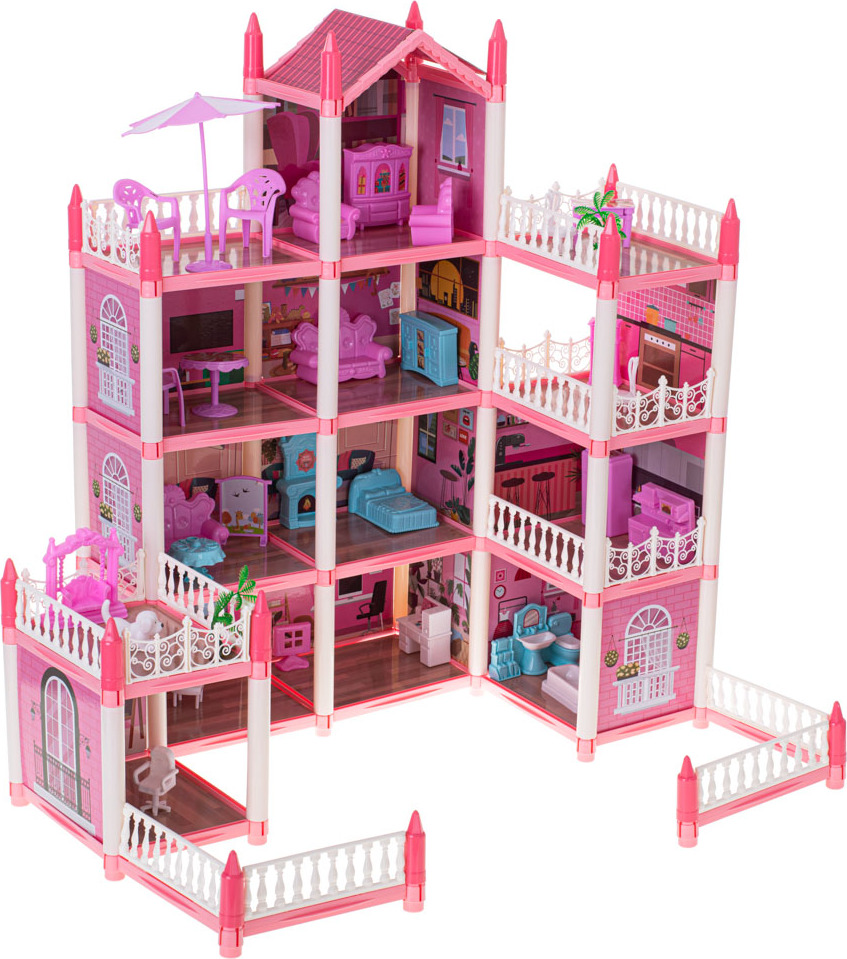 O čem sní každý majitel panenky? Samozřejmě o domečku, kde by mohly bydlet všechny panenky! Čtyři patra, spousta pokojů, velká zahrada a několik teras? To zní ideálně! Fantastický domeček pro panenky, který zaručí super zábavu pro každé dítě a jeho panenky. Odteď už vaše panenky nebudou muset spát na podlaze, ale budou mít své vlastní čtyři rohy v krásné růžové vile. Domeček si musíte sami sestavit, ale jeho skládání může být i zábavné! Skládání dílků a společné plánování dalších pater bude fantastická společná zábava, která pomůže posílit vaše pouto s dítětem.