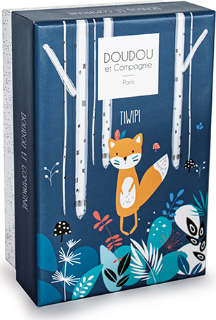 Plyšová liška s dečkou doprovází miminko od narození, aby mu přinesla hebkost, pohodlí a objetí. Rozvíjí smysly a zvědavost. V kmeni Tiwipi je chytrá liška, vlk, velmi roztomilý medvídek, nezbedný ježek a jiní, objevte je rychle! Je to velmi pěkný dárek k Vánocům nebo k oslavě narození miminka. Prezentováno v pěkně ladící krabičce.