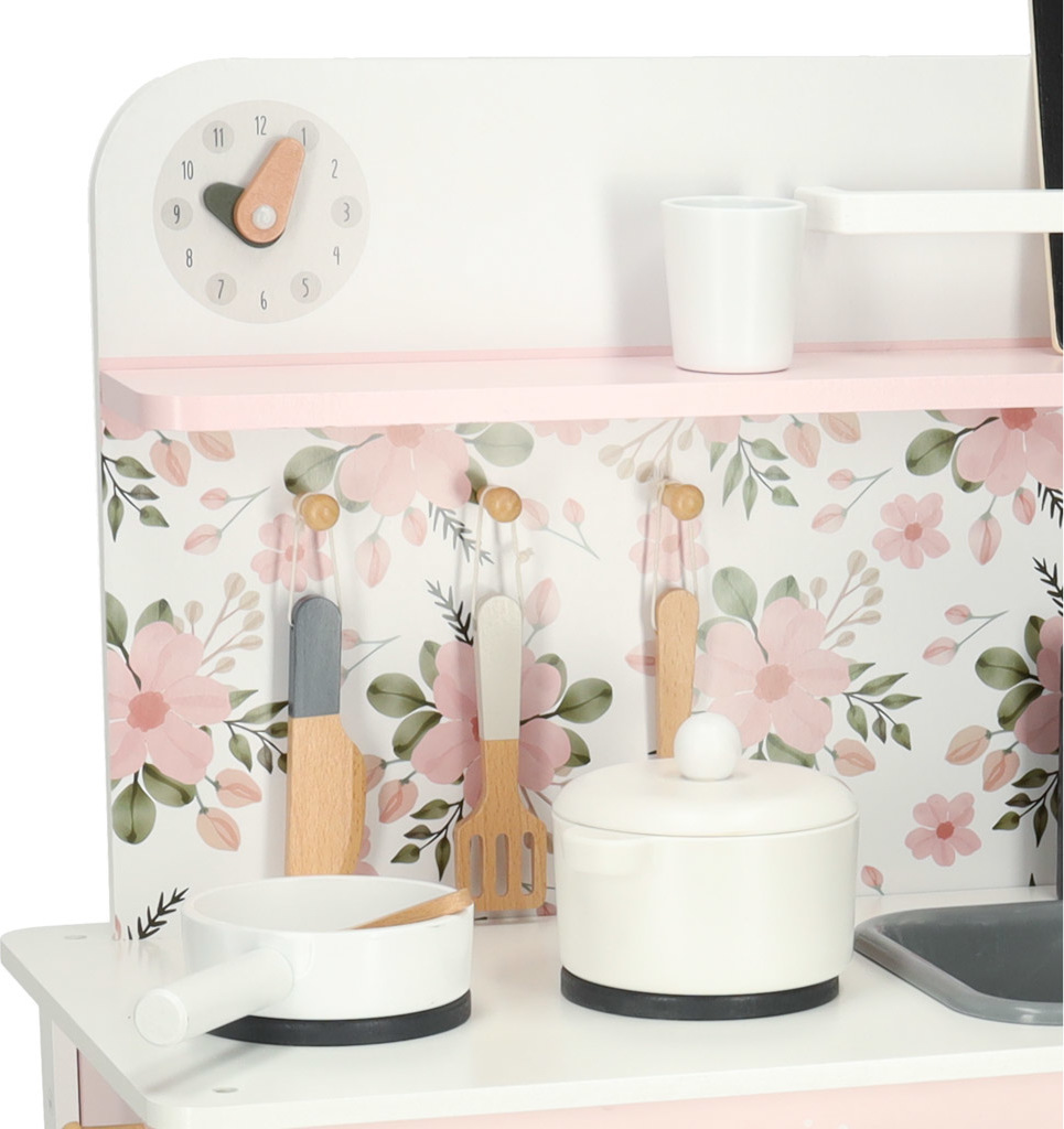 Dřevěná kuchyňka LULILO Floro s troubou - růžové květy