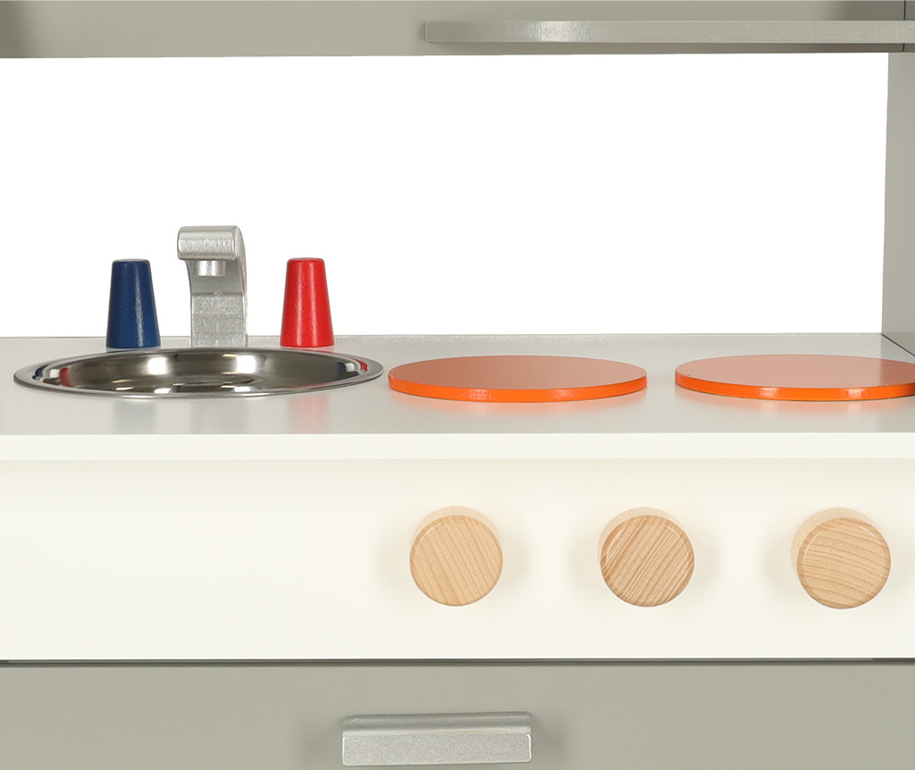 Hraní v kuchyni bude také skvělou příležitostí, jak seznámit vaše dítě s bezpečným vařením. Pohyblivé knoflíky, které vydávají zvuky, budou dobrou lekcí, aby po vaření vždy vypnuli hořák, a kovový dřez naučí vaše dítě mýt nádobí po každém jídle. Při hraní na zkušeného kuchaře si vaše dítě také procvičí manuální zručnost krájením jídla dřevěným nožem nebo otáčením knoflíků na hračkách. Kreativita vašeho dítěte se během hry také bude rozvíjet – bude si moci vymýšlet nová jídla pro svou rodinu nebo dokonce provozovat profesionální restauraci!