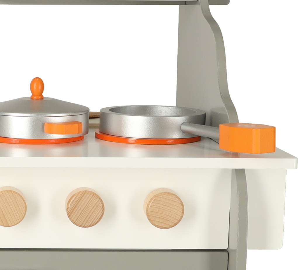 Během hry si vaše dítě bude moci hrát na skutečného kuchaře a předvést své dovednosti porotě – rodičům a sourozencům. Kuchyňka je dodávána se vším nezbytným příslušenstvím, bez kterého by vaření nepochybně bylo mnohem obtížnější. Sada obsahuje hrnec s poklicí, pánev, prkénko, příbory, talíř a dokonce i koření, díky čemuž bude každé jídlo mnohem chutnější! Kuchyňka obsahuje také základní spotřebiče, jako je sporák, trouba a dřez s kohoutkem, díky nimž celá kuchyně vypadá realističtěji.