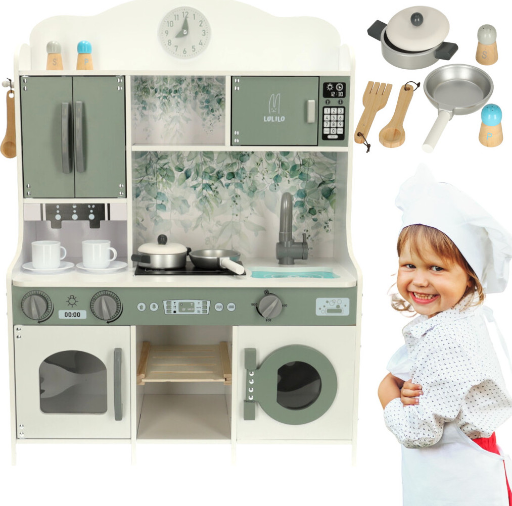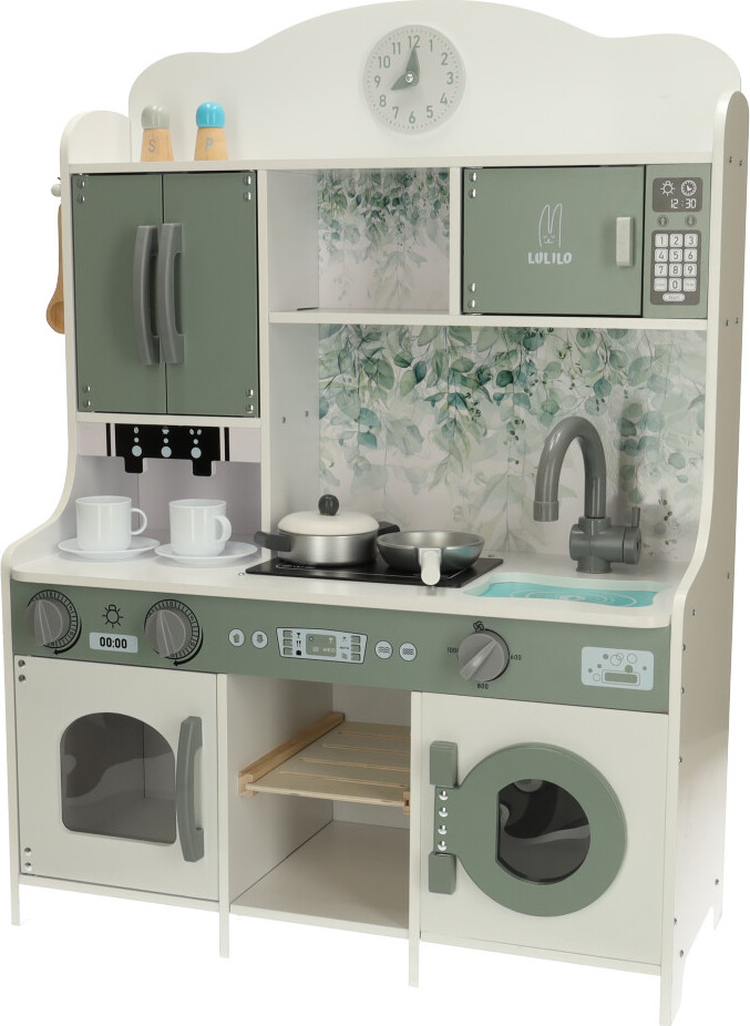 Dopřejte svému dítěti vášeň pro vaření! Je známo, že děti rády napodobují své rodiče, a to i při těch méně příjemných pracích, jako je úklid nebo vaření. Takové modelování pomáhá dětem cítit se součástí společenství a učí je mnoha cenným dovednostem a důležitosti těchto činností v každodenním životě. Působivá dětská kuchyňka bude dokonalou hračkou, díky níž se batole bude cítit alespoň trochu jako skutečný dospělý. Hra v kuchyni je také ideální záminkou k tomu, abyste dítě seznámili s domácími pracemi. Zajímavý design a tlumené barvy kuchyně se hodí do každého dětského pokoje. Jasné barvy a velké množství lákavých doplňků upoutají pozornost každého dítěte.