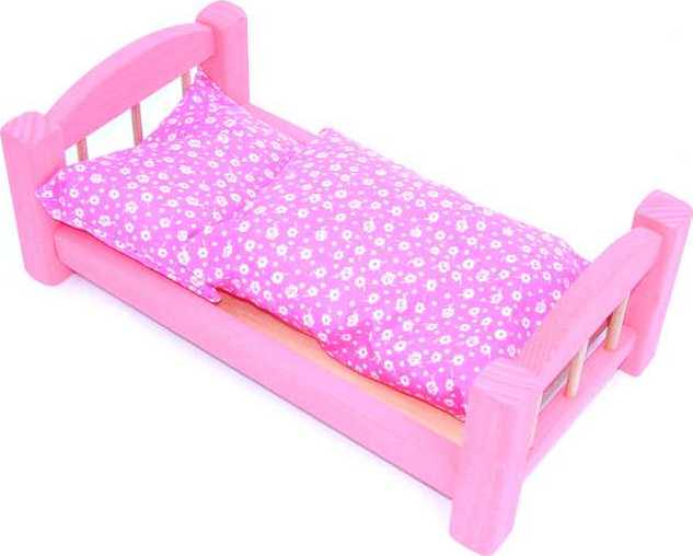 Dřevěná postýlka pro panenky růžová