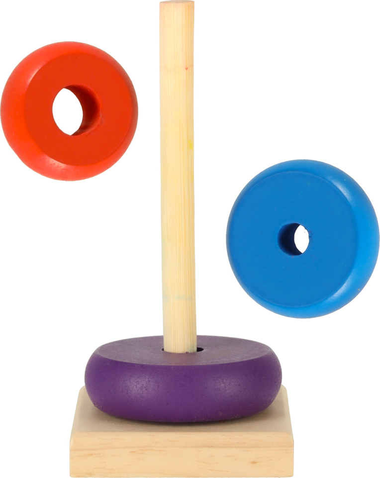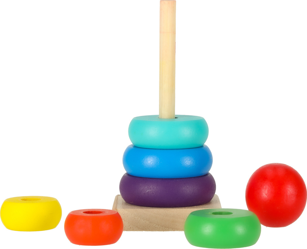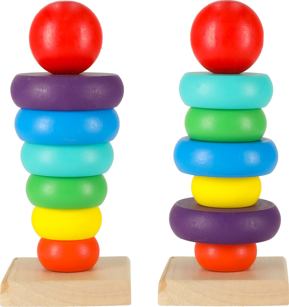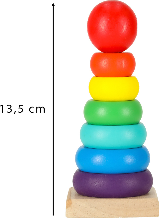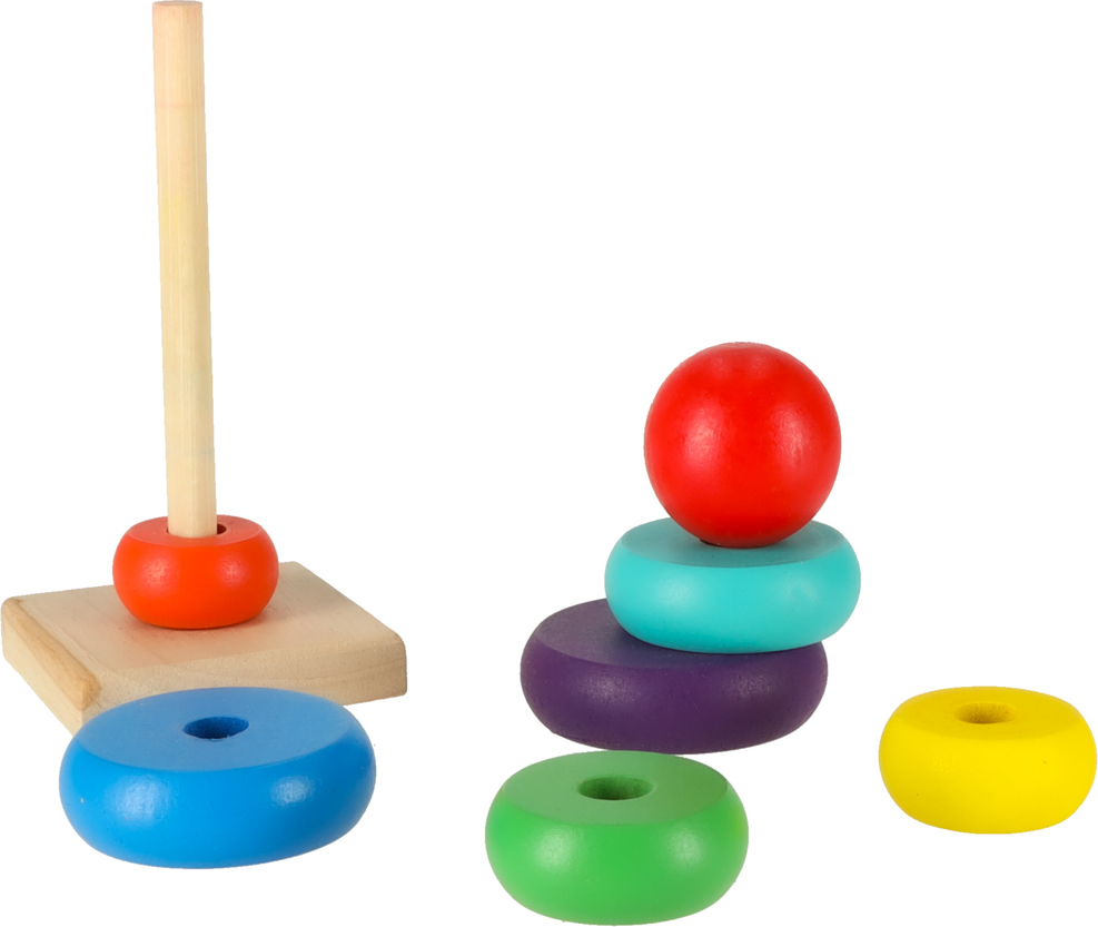 Nasazování obruče na tyč rozvíjí zručnost dítěte a podporuje smyslovou integraci. Hračku lze použít také k výuce barev. Skládačka je pro vaše dítě bezpečná. Hrany byly obroušeny a na všechny díly byly použity bezpečné netoxické barvy. Dřevěné hračky jsou vhodnou volbou pro ty, kteří chtějí žít v souladu s ekologií - jsou vyrobeny z přírodních materiálů, jsou odolné a vydrží po celé generace. Kromě toho jsou estetické, příjemné na pohled a příjemné na dotek.