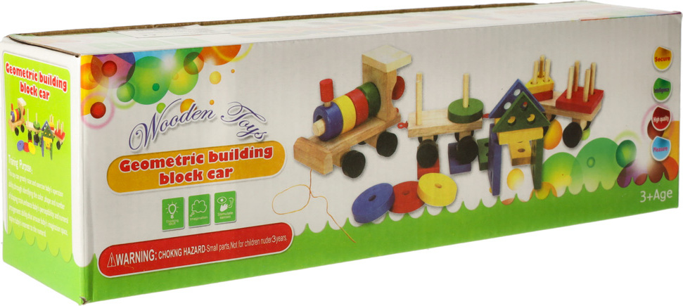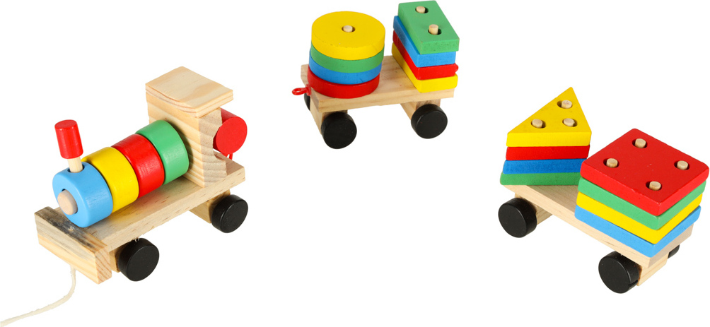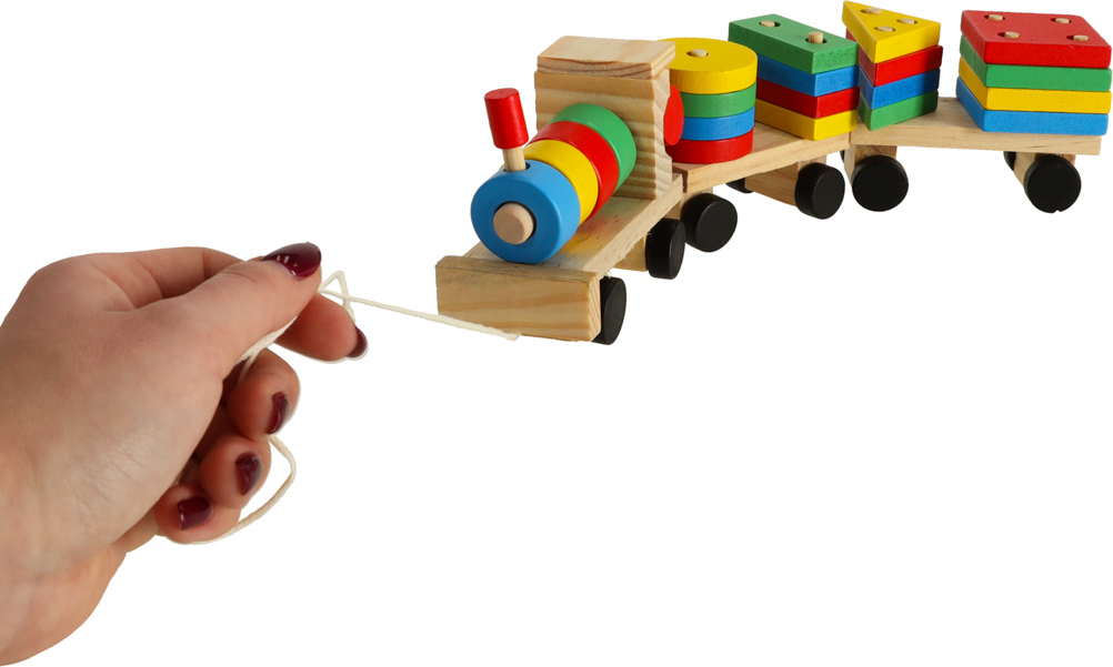 K přední části vláčku je připevněn krátký provázek a kolečka jsou pohyblivá, což umožňuje volné přemisťování a tahání hračky. Tento vláček upoutá pozornost každého dítěte a poskytne hodiny zábavy. Učení a zábava v jednom. Perfektní nápad na dárek. Všechny hrany a boky byly pečlivě vyleštěny, aby se zabránilo zasekávání třísek během hry.