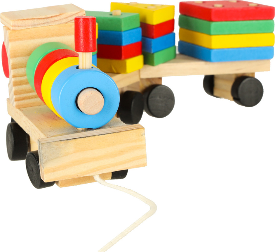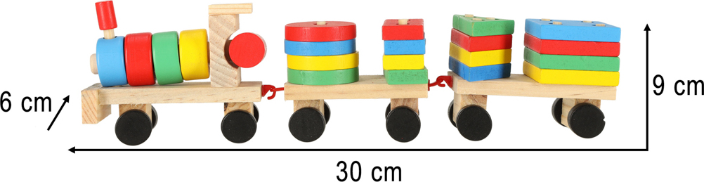 Fantastický vláček vyrobený celý ze dřeva s barevnými kostkami. Tato hračka pomůže rozvíjet obratnost a manuální dovednosti vašeho dítěte. Pomůže rozvíjet logické myšlení a trpělivost a také podnítí dětskou fantazii a kreativitu. Tato hračka seznámí vaše dítě s novými tvary a názvy barev.