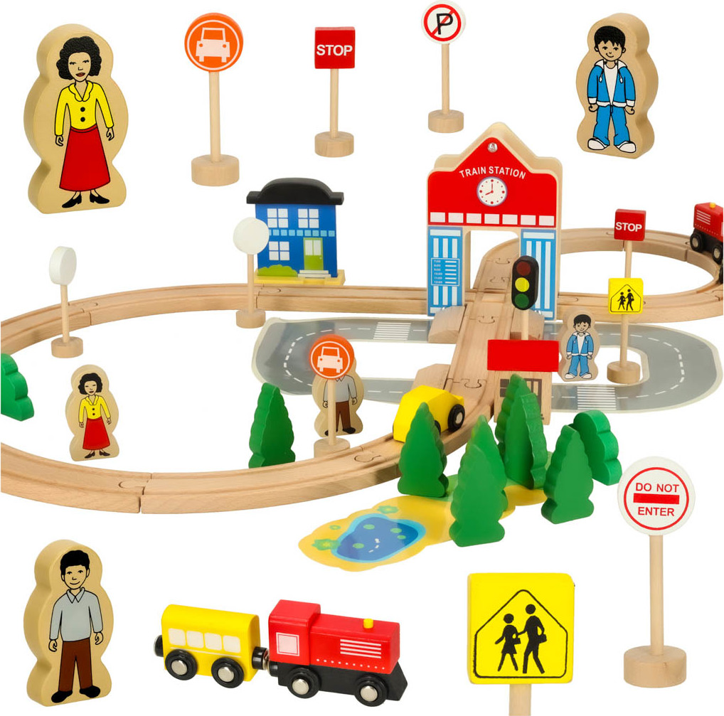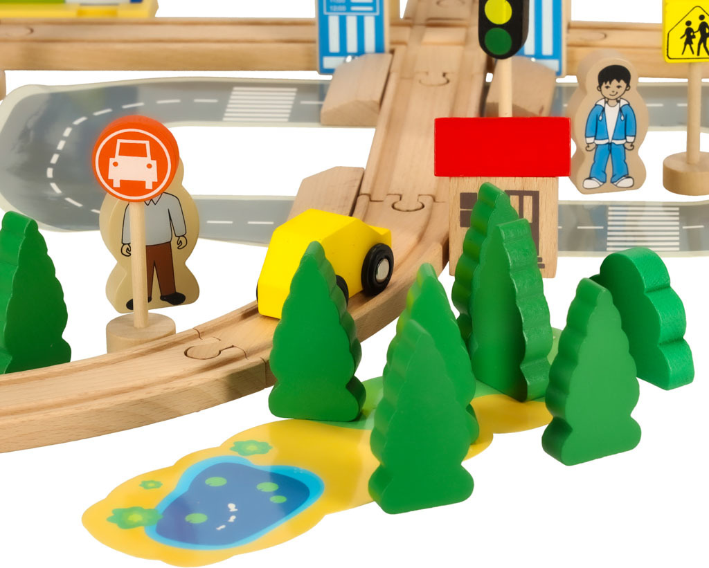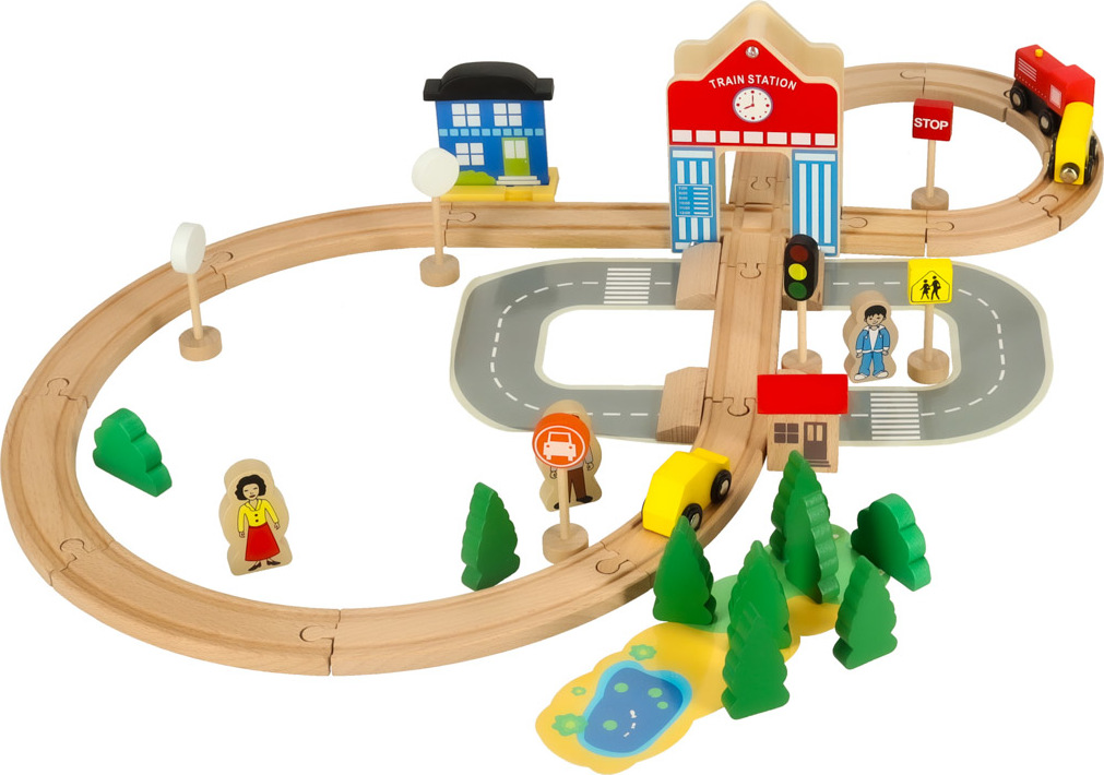 Dřevěné koleje jsou ideální vstupenkou do světa her spojujících zábavu se správným rozvojem vašeho dítěte! Sada se skládá z 50 hladce obroušených dřevěných dílků. Díky tomu je hračka nejen estetická, ale také mimořádně odolná. Poskytne vašemu dítěti hodiny zábavy! Kromě kolejí sada obsahuje vláček s vagónkem, autíčko, budovy, figurky a dekorace města, které lze libovolně uspořádat a vytvořit si tak vlastní město. Pokládání kolejí vyžaduje logické myšlení a schopnost řešit problémy. Dítě musí přemýšlet, jak jednotlivé dílky spojit, aby vznikla souvislá trať. Bude to vynikající cvičení manuální zručnosti! Stavění tratí poskytuje skvělou příležitost strávit čas s rodiči nebo sourozenci. Dejte svému dítěti víc než hračku - způsob, jak kreativně trávit volný čas!