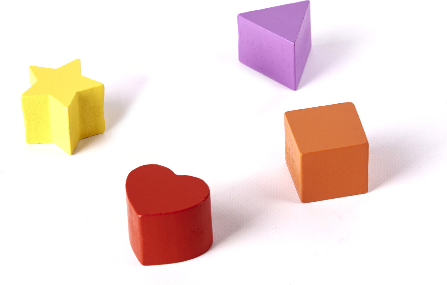Barevné prvky přitahují oko i malé ručičky svými barvami. Díky neutrální dřevěné základně zároveň hračka nepůsobí na dítě nadměrnými podněty.