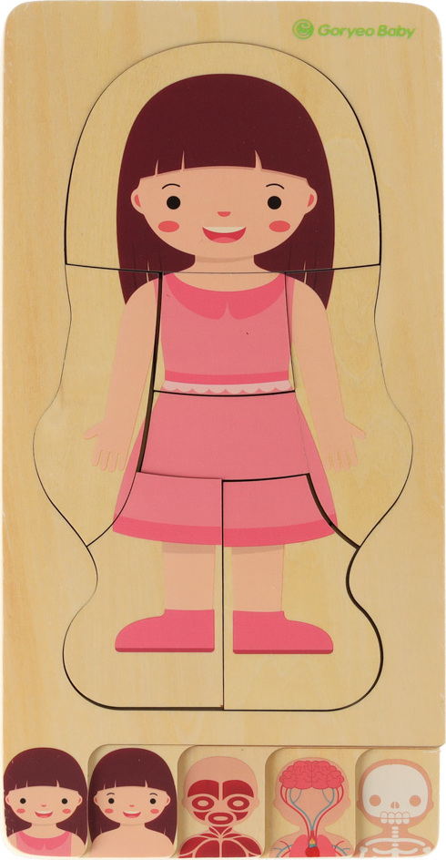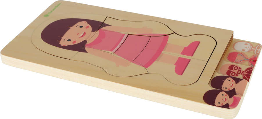 Dřevěné vrstvené Montessori puzzle Tělo - dívka