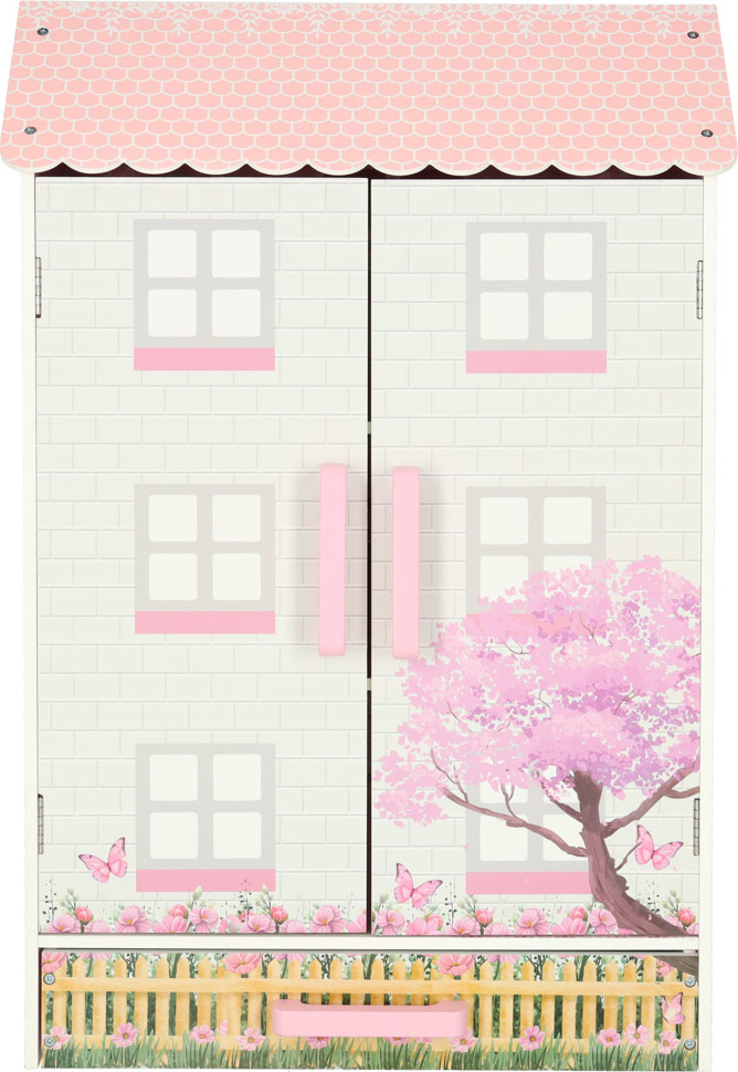 Tento okouzlující domeček pro panenky s uzamykatelnými dvířky bude nepochybně dekorativním doplňkem dětského pokoje. Uzamykatelný vnitřek a zásuvka usnadňují udržování pořádku po hraní a uložení dalších doplňků.