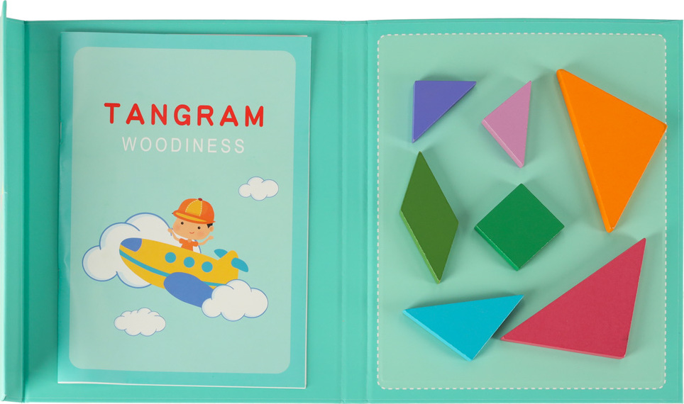 Tajemství ukryté ve skládačce! Tangramy jsou velmi stará čínská hra. Nikdo přesně neví, kdy a jak vznikla. Podle legendy staré více než 1000 let muž jménem Tan upustil na zem dlaždici a ta se rozbila na 7 částí. Když se ji pokoušel složit zpět do tvaru čtverce, zjistil, že se dá složit řada různých tvarů.