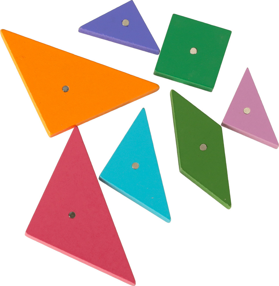 - sedm dřevěných barevných geometrických obrazců s magnety