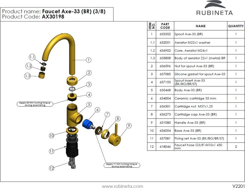 Dřezová stojánková vodovodní baterie AXE-33 Bronz vyniká vysoce kvalitním zpracováním a spolehlivou funkčností všech součástí a materiálů.