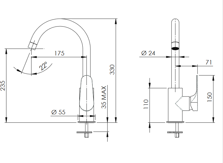 Dřezová stojánková vodovodní baterie FONTI 72 představuje moderní design a kvalitu. Zaoblené otočné ramínko jí dodává elegantní vzhled. Otočná dřezová stojánková baterie FONTI 72 vyniká vysoce kvalitním zpracováním a spolehlivou funkčností všech součástí a materiálů.