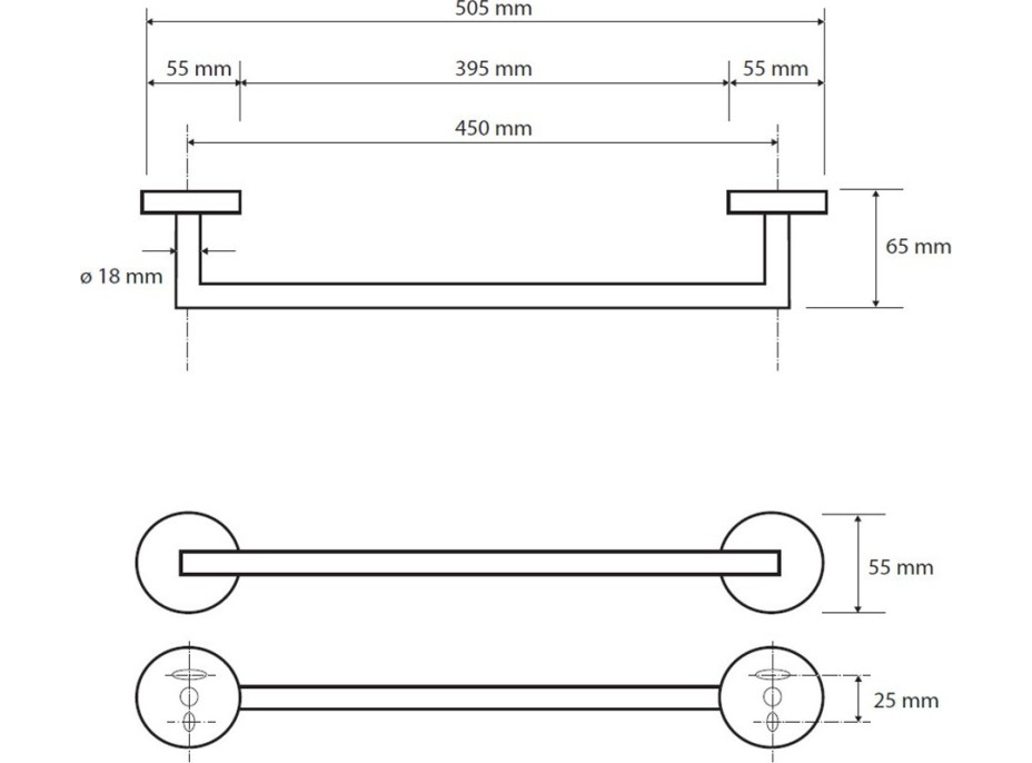 Držák na ručníky - 505×55×65 mm