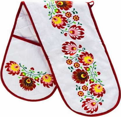 Vysoce kvalitní dvojitá rukavice je vyrobena ze 100% bavlny. Chrání před popálením při přípravě pokrmů doma i na grilu. Folk je kolekce textilních doplňků nezbytných v kuchyni každé dámy i pána domu. Vyznačuje se krásným květovaným dekorem v živých barvách. Textilní doplňky nejen ozdobí vaše kuchyňské království, ale především zajistí vaši bezpečnost při vaření, smažení nebo pečení.