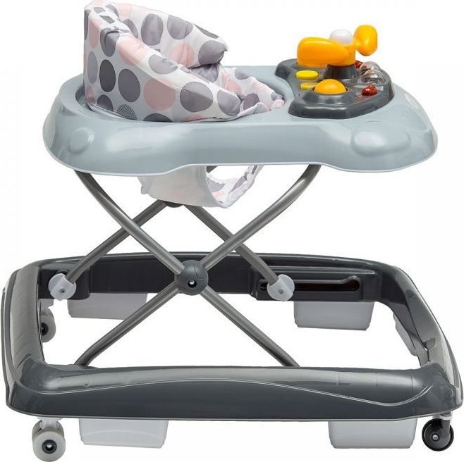Dětské interaktivní chodítko s hracím pultíkem je určeno pro děti od 6 měsíců. Výšku chodítka lze na stavit dle výšky dítěte. Přední kolečka jsou otočná o 360°, zadní silikonová slouží zároveň jako zábrana jízdy pozpátku. Na spodní straně je umístěn stabilizační rám zabraňující převrácení. Kolečka jsou vyrobena z měkkého materiálu, který nepoškrábe podlahu. Potah sedátka lze sejmout a vyčistit. Výhody výrobku: - určeno pro děti od 6 měsíců - třístupňové nastavení výšky dle věku dítěte od 50 do 54 cm - tvarované sedátko zajišťující správné držení těla - měkka kolečka, která nepoškrábou podlahu - přední kolečka otočná o 360° - zadní kolečka blokují jízdu dozadu - stabilizační systém proti převrácení - zpevněné opěradlo sedátka Rozměry a technické údaje: - šířka 55 cm - nastavitelná výška konstrukce 50,52,54 cm - délka 69 cm - maximální nosnost 25 kgVlastnosti
