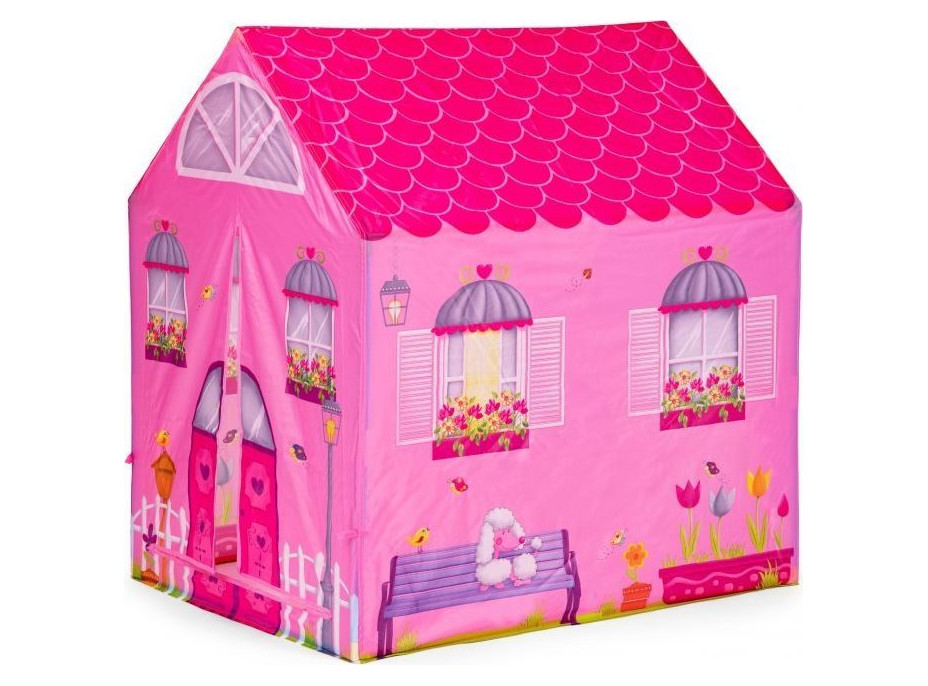 Dětský stan s tunelem s motivem růžového domečku. zaujme svou veselou barevností na první pohled a zajistí zábavu na dlouhou dobu poslouží na hraní, jako originální skrýš nebo osobní koutek, kde mohou děti odpočívat vyroben ze 100% polyeteru (PES) a obsahuje plastové skládací tyče a spojnice vstupní dveře lze přichytnout k bokům stanu jednoduchý na postavení i složení rozměry stanu s tunelem: 190 x 73 x 102 cmVlastnosti