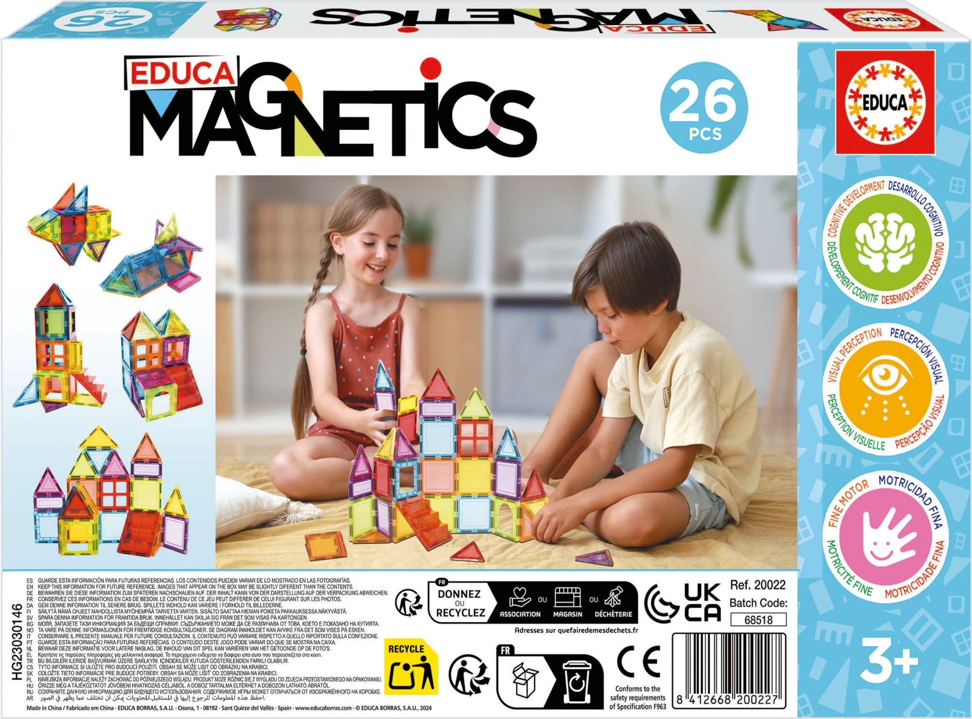 Představ si - postav - uč se! Kreativní magnetická stavebnice Magnetics od španělského výrobce EDUCA umožňuje sestavovat velké množství trojrozměrných objektů, pomocí dvourozměrných plastových mnohoúhelníků.
