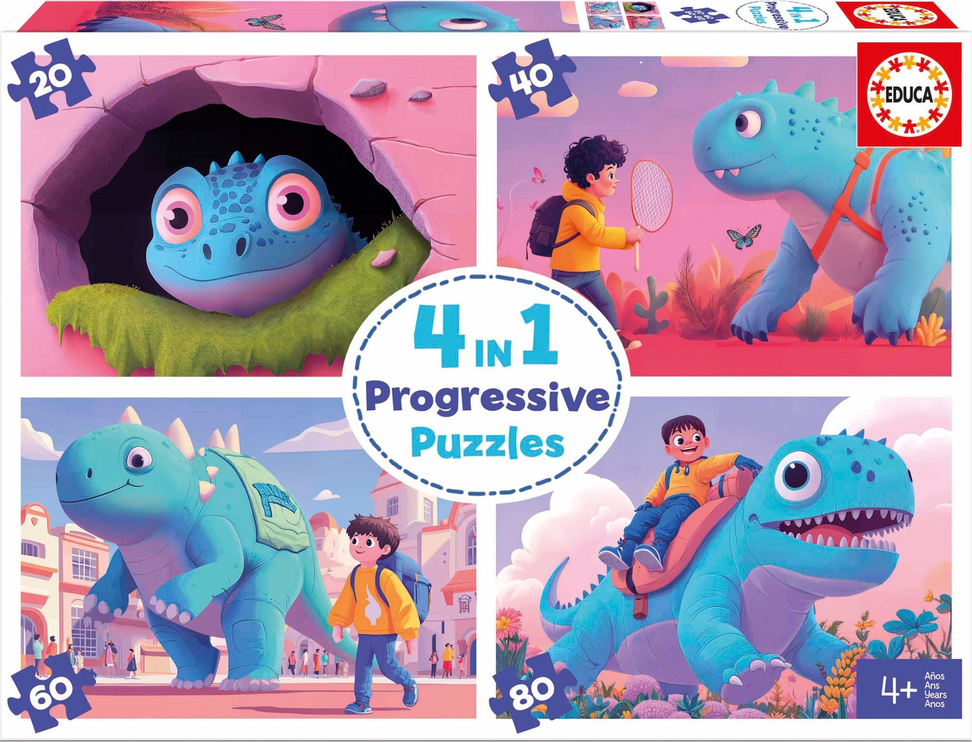 EDUCA Puzzle Přátelští dinosauři 4v1 (20,40,60,80 dílků)