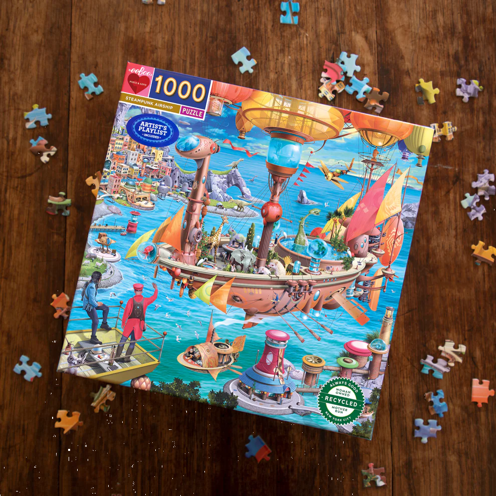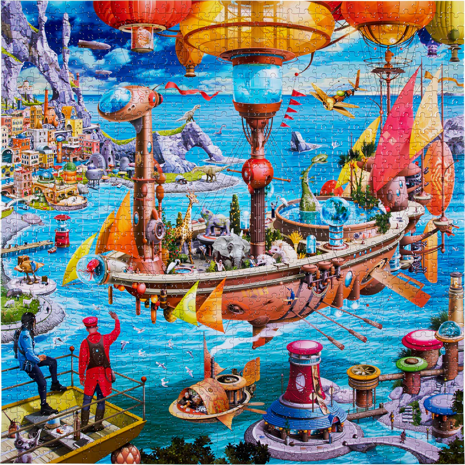 EEBOO Čtvercové puzzle Steampunková vzducholoď 1000 dílků