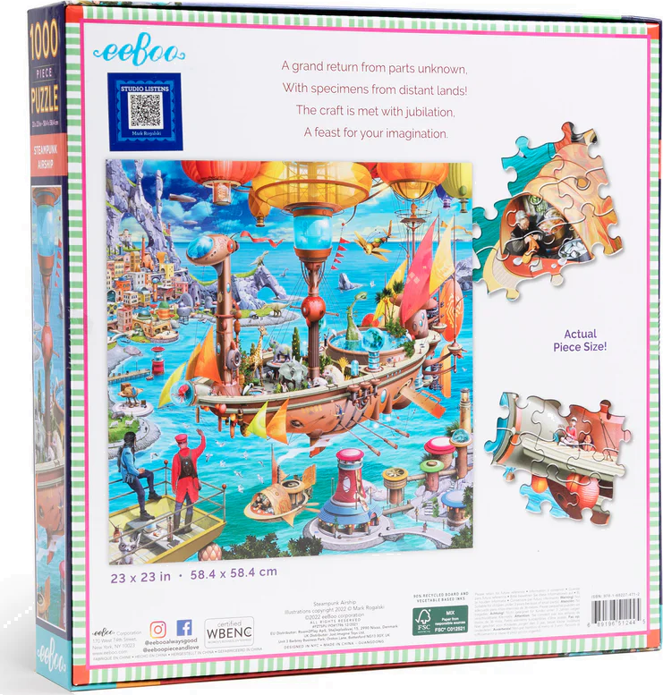 Vyrobeno z 90% recyklovaného šedého kartonu a tištěno inkousty na rostlinné bázi. Puzzle od amerického výrobce EEBOO. Rozměr složeného puzzle cca 58,4 x 58,4 cmVlastnosti