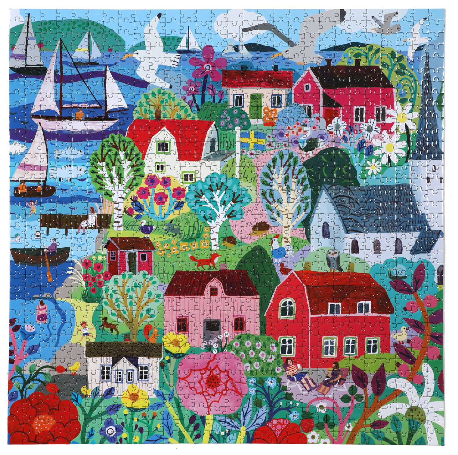 EEBOO Čtvercové puzzle Švédská rybářská vesnička 1000 dílků