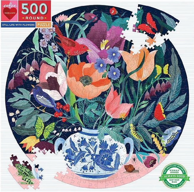 EEBOO Kulaté puzzle Zátiší s květinami 500 dílků