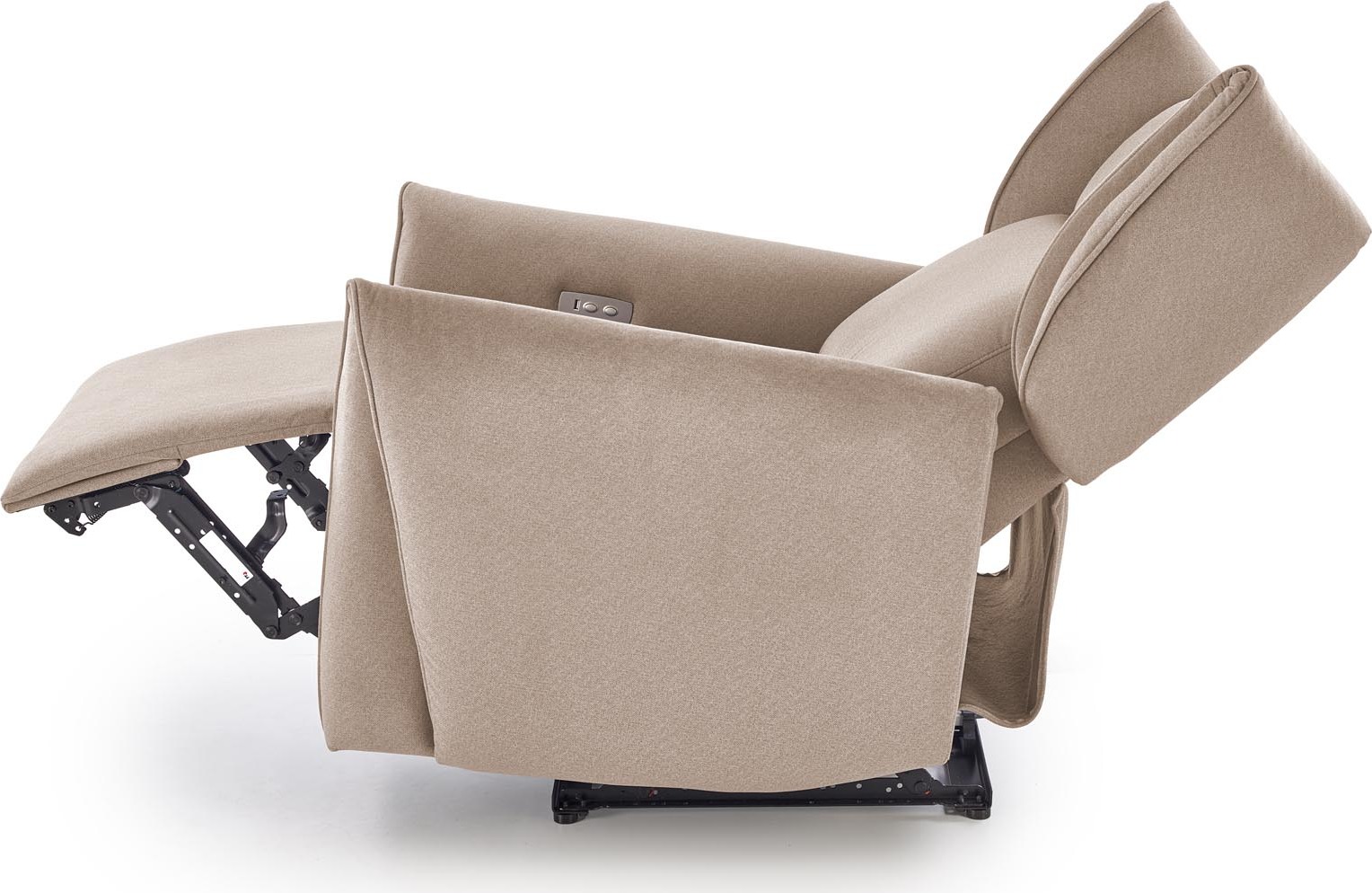Mechanismus křesla s elektrickým ovládáním umožňuje sklopení opěradla a vyklopení podnožky, což nabízí ideální relaxační polohu. Výhodou je i USB nabíjecí zásuvka integrovaná v ovladači křesla.