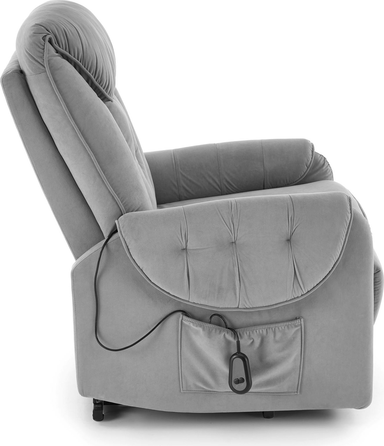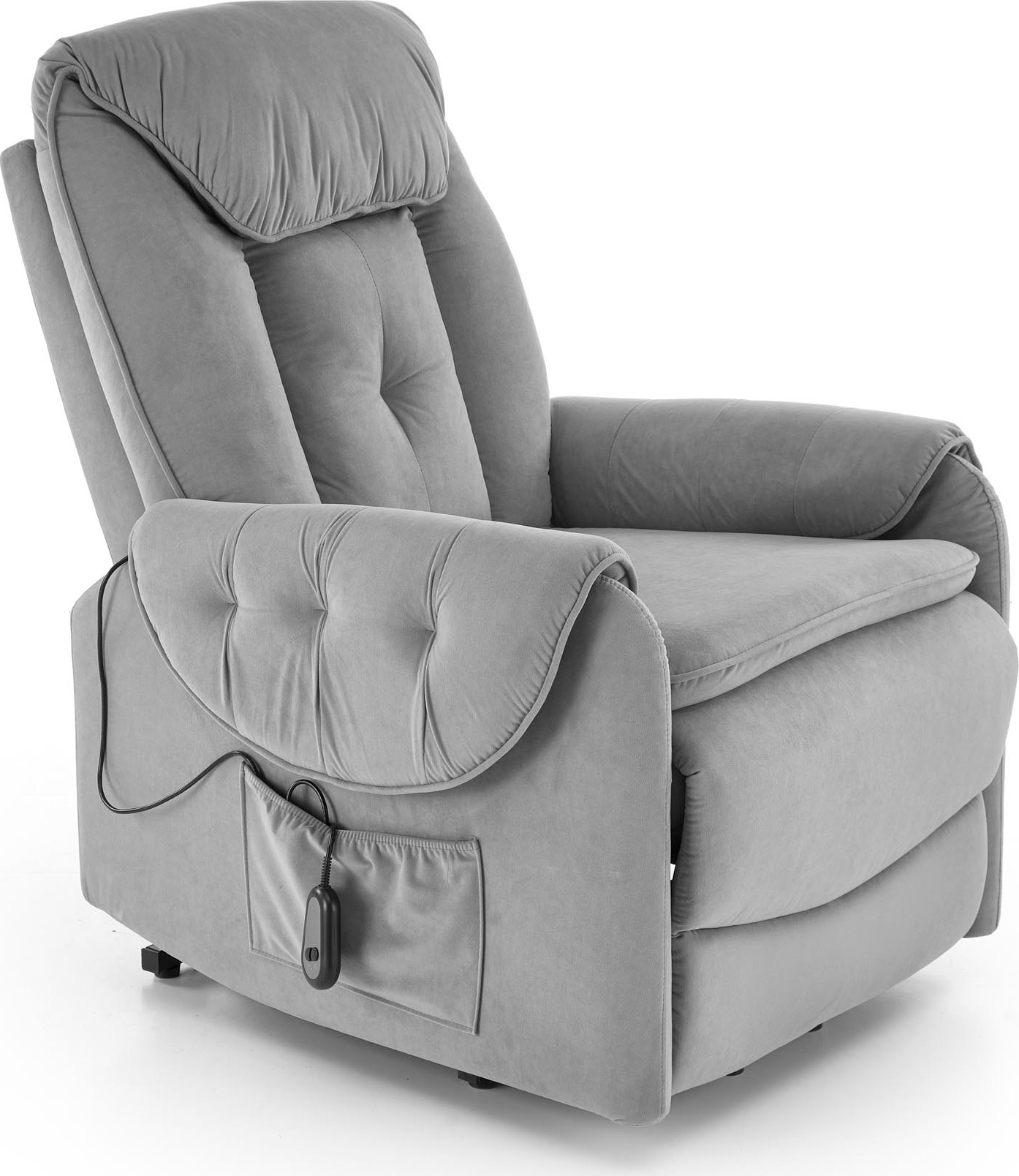 Elektrické polohovací křeslo HORTON - čalouněné látkou - popelavě šedé