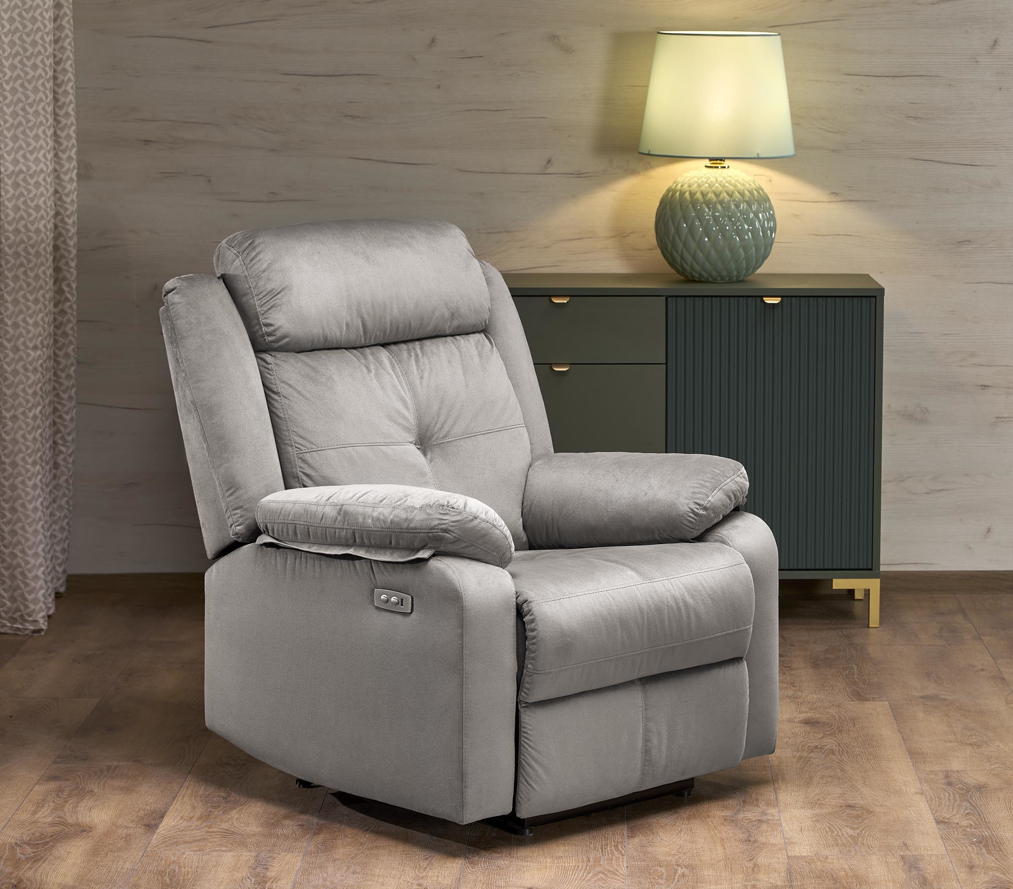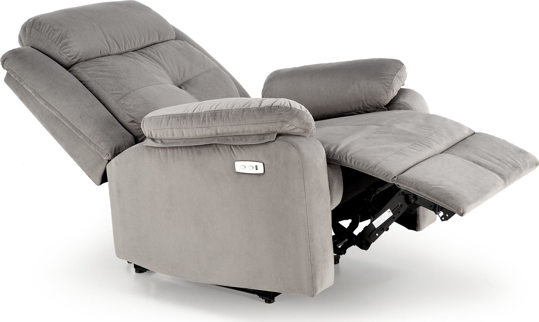 Mechanismus křesla s elektrickým ovládáním umožňuje sklopení opěradla a vyklopení podnožky, což nabízí ideální relaxační polohu. Výhodou je i USB nabíjecí zásuvka integrovaná v ovladači křesla.