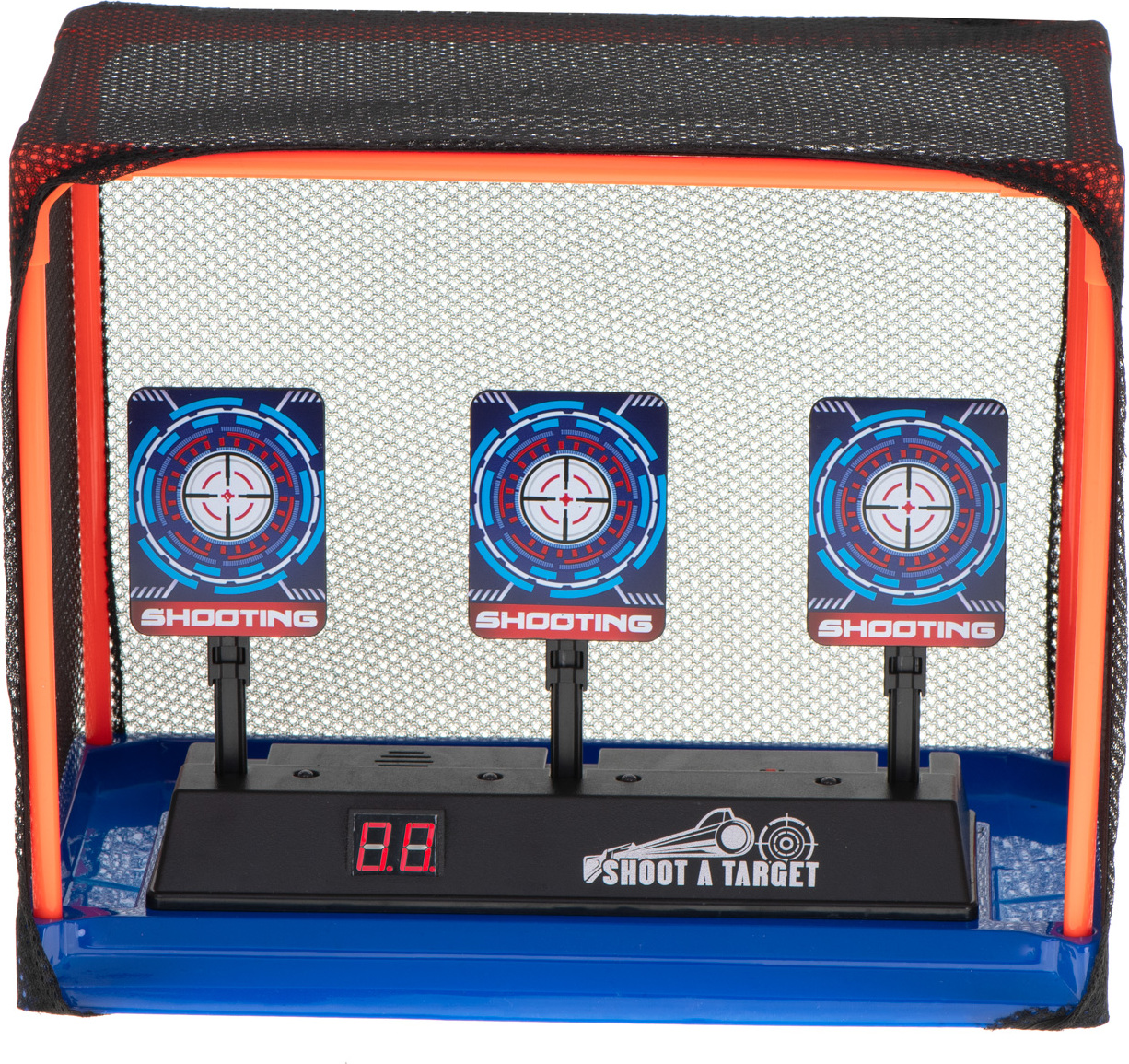 Na terč lze střílet pomocí pěnových šipkových nebo brokových zbraní. Obsahuje světelné a zvukové efekty pro vylepšení hry. Zásah může spustit zvuk tříštění skla nebo potlesk. Na terči je také umístěno dvoumístné počítadlo skóre. Každý terč se po zásahu sklopí. Sestřelením tří terčů získáte 1 bod, po kterém se všechny automaticky zvednou.
