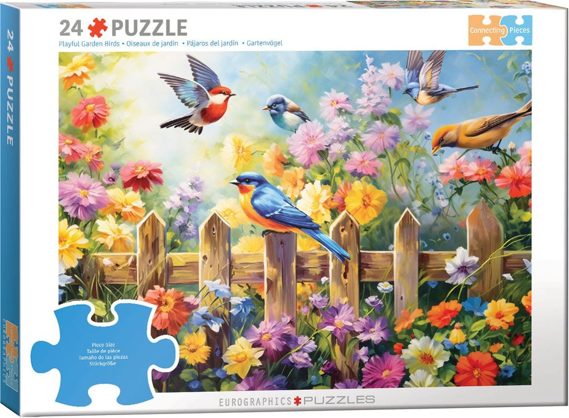 EUROGRAPHICS Puzzle Connecting Pieces: Hraví zahradní ptáci 24 dílků