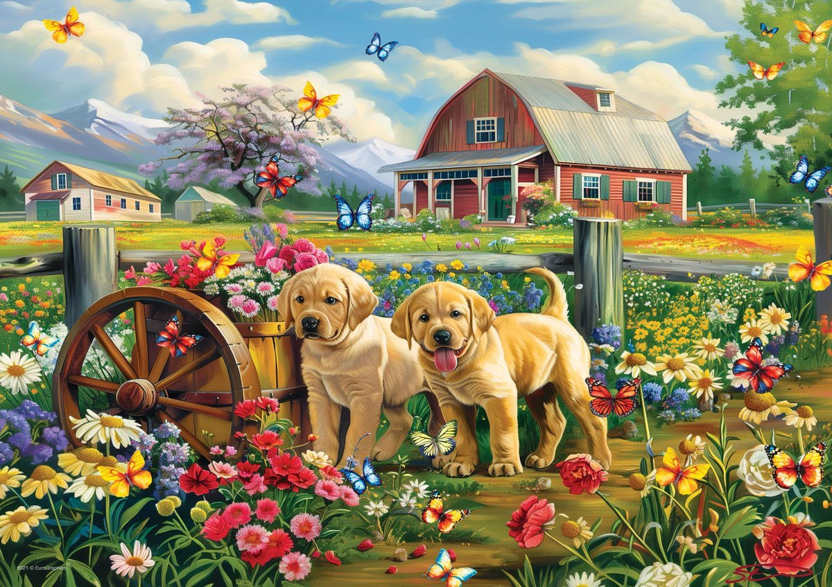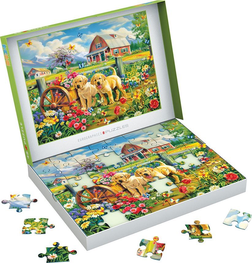 EUROGRAPHICS Puzzle Connecting Pieces: Štěňata na jaře 48 dílků