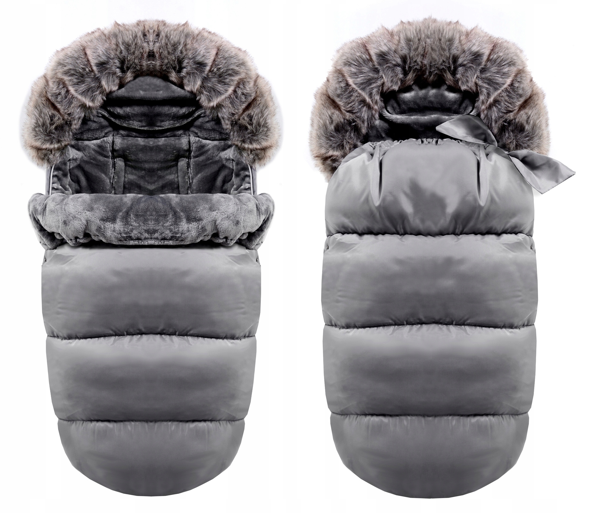 Fusak do kočárku - šedý s kožešinou