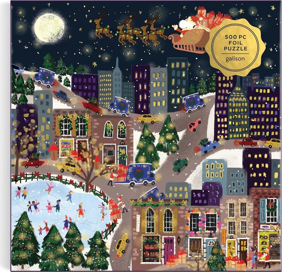 Galison Fóliové puzzle Joy Laforme Vánoční městečko Presentville 500 dílků