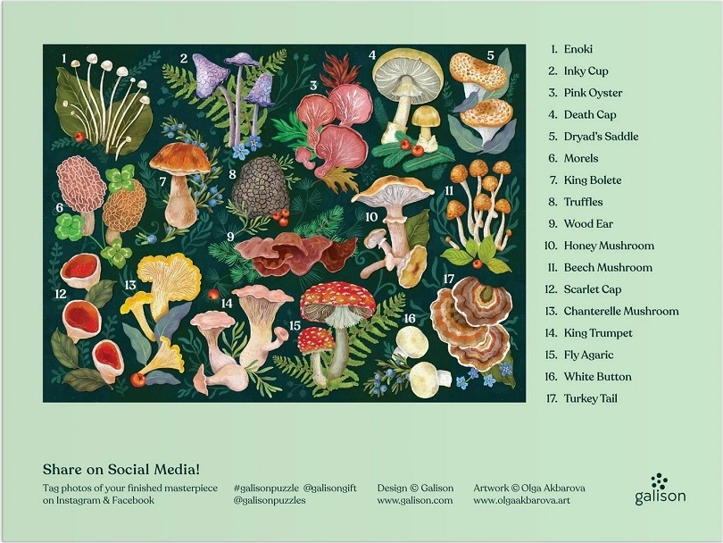 Puzzle ze světa hub. Toto puzzle je tou správnou výzvou pro celou rodinu. Milovníci puzzle jistě ocení všechny zajímavé detaily, které po složení vytvářejí krásný obraz hub, který dodá punc elegance každé místnosti. Ať už hledáte zábavnou aktivitu pro deštivý den nebo jedinečný dárek pro milovanou osobu, toto puzzle určitě udělá dojem. Je vhodné pro každého, kdo má rád přírodu a mykologii. Díky svým složitým detailům a náročnému designu je toto puzzle ideální pro každého a z puzzle činí krásný a poutavý doplněk do každého domova nebo kanceláře.