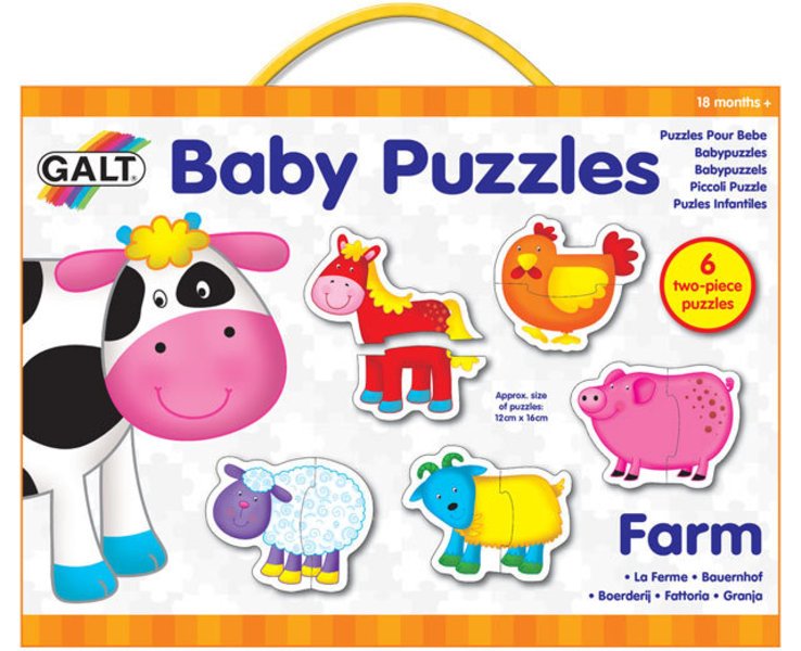 Baby puzzle i pro Vaše dítě. Šest obrysových dvojiček pro nejmenší děti s motivem zvířátek z farmy. Velké dílky s tloušťkou 3 mm jsou pro malé dětské ručičky snadno uchopitelné a první skládání rozvíjí manuální zručnost, koordinaci i prostorovou orientaci. Přibližná velikost jednoho puzzle: 16 x 12 cm. Vhodné pro děti od 18 měsíců. Rozměr složeného puzzle cca 16 x 12 cmVlastnosti