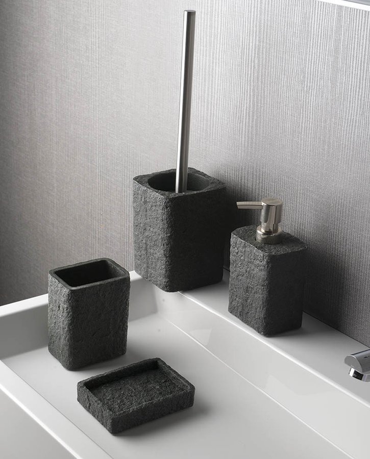 ARIES - série koupelnových doplňků na postavení vyrobených z polyresinu s imitací kamene.