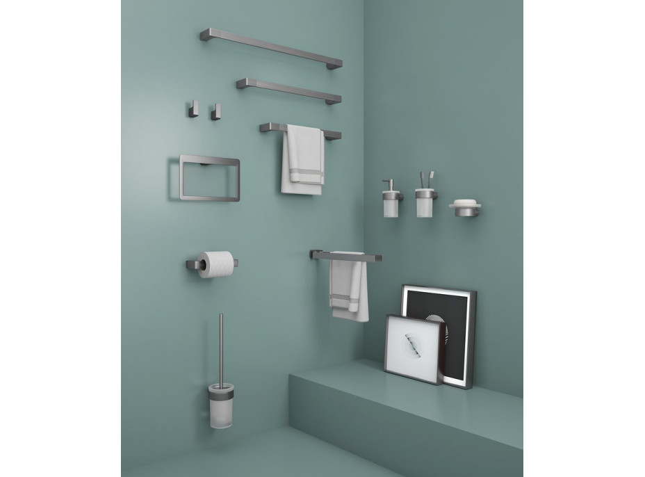 Snad inspirován pohledem na krásu Pyrenejí navrhl designér sérii doplňků PIRENEI. Masivní základna, kombinace přímých linií a zaoblených hran je spojením elegance a majestátnosti. Na výběr jsou doplňky v provedení v chromové, matné černé, matné bílé, gun metal, zlaté a matné zlaté variantě.