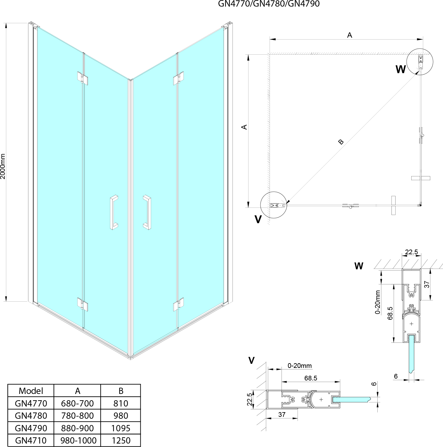 - Dveře skládací 700 - 900 mm umožňují složení ke stěně a úsporu místa v koupelně