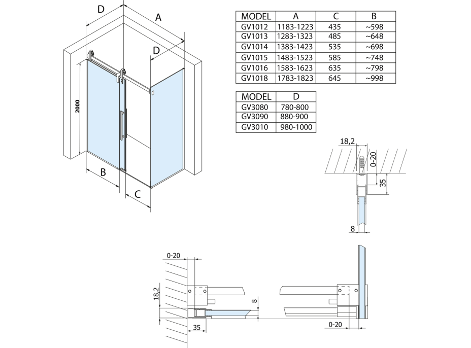 - Při výrobě dveří je použito bezpečnostní sklo o síle 8 mm s oboustrannou povrchovou úpravou COATED GLASS pro snadnou údržbu
