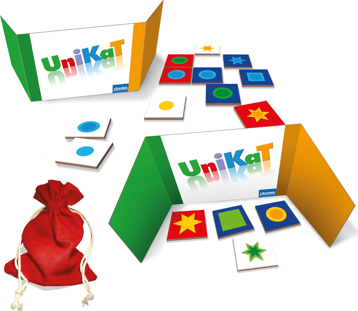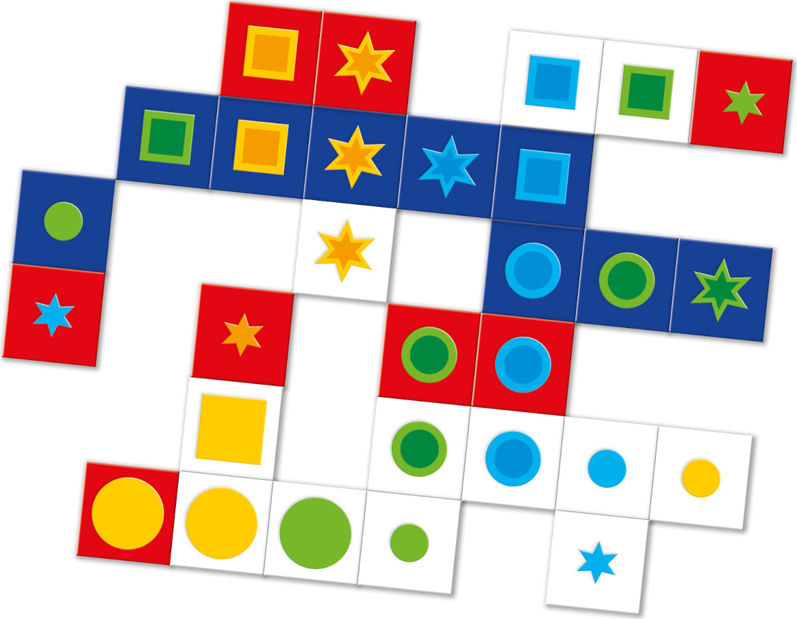 Skvělá logická hra pro 2 až 4 hráče ve věku od 8 let rozvíjí schopnost koncentrace, strategického myšlení a rychlé reakce v závěrečné fázi hry. Vyhrává totiž ten, kdo má nejlepší postřeh, pozorovací a kombinační schopnosti, dokáže šikovně předvídat následující tahy a správně se rozhoduje. Hráči postupně pokládají na stůl čtverce s geometrickými obrazci. Podmínkou je, aby se vedle sebe ležící čtverce lišily pouze v jednom znaku: tvaru obrazce, jeho barvě, velikosti nebo barvě pozadí. Vítězem se stává hráč, který se jako první zbaví všech svých čtverců. Jednoduchá pravidla, stačí jen otevřít krabičku a začít hrát.