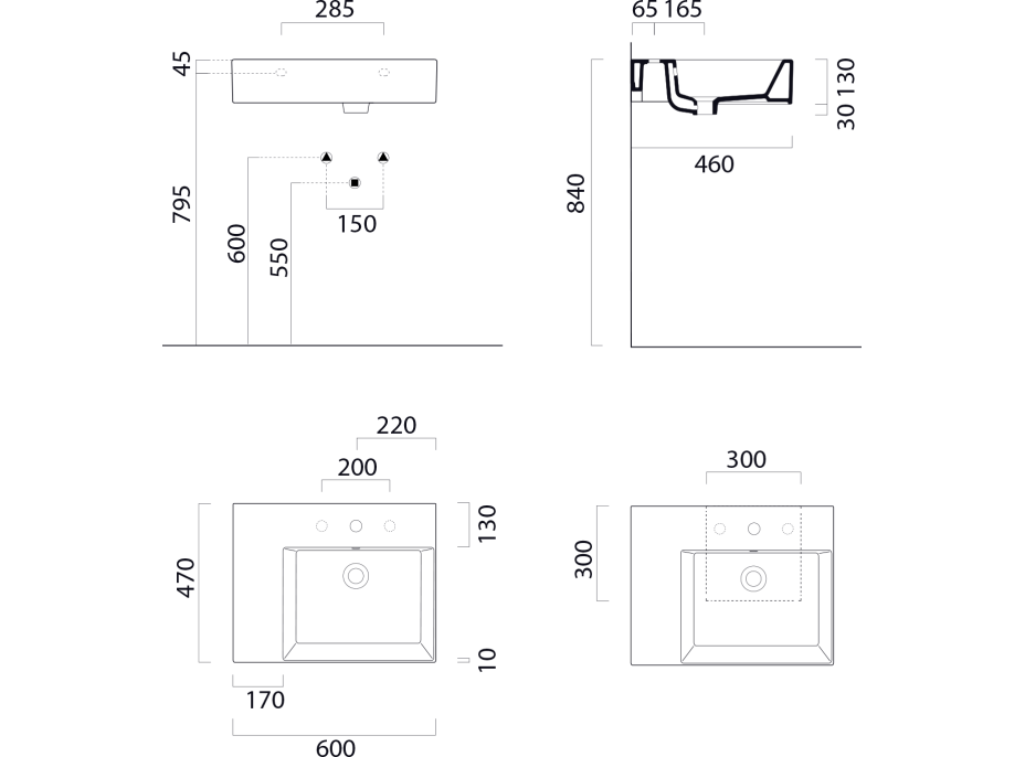 Součástí série umyvadel jsou navíc dvě kulatá umyvadla na desku a dvě obdélníková vestavná umyvadla, všechna s velmi štíhlými hranami.