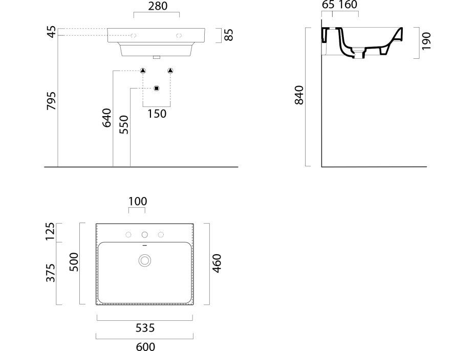 GSI NUBES keramické umyvadlo 60x50cm, bílá mat 9631109