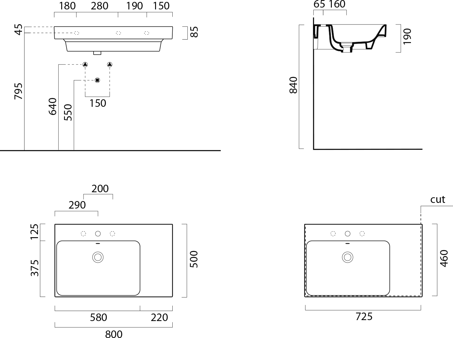 GSI NUBES keramické umyvadlo 80x50cm, s odkládací plochou vpravo, černá mat 9629126