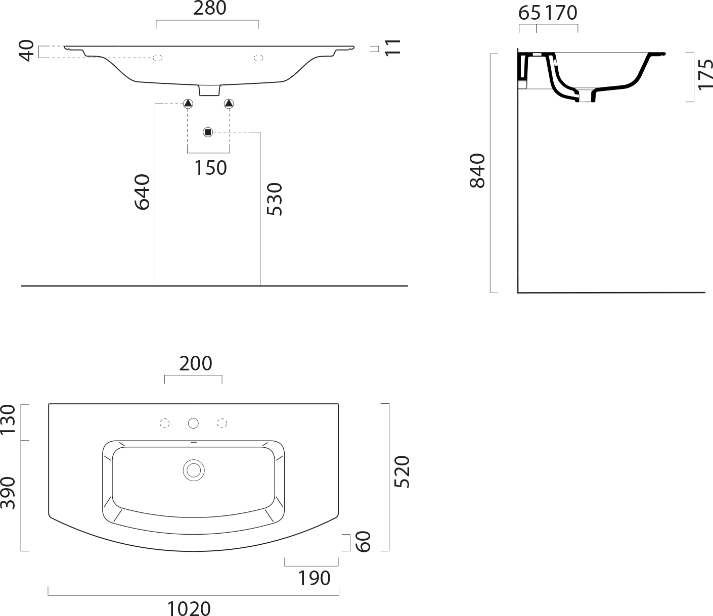 GSI PURA keramické umyvadlo Slim oblé 102x52cm, 3 otvory, bílá ExtraGlaze 8825311