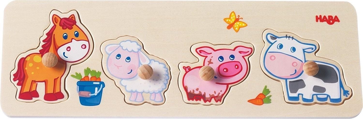 Dřevěná vkládačka s úchytkami od výrobce HABA.
